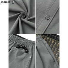 中老年唐装男长袖棉麻中国风爸爸夏装套装老人衣服爷爷装中式男装