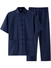 唐装男中老年夏装短袖套装棉麻中国风新中式爸爸装禅服太极居士服