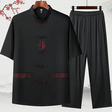 春夏季中老年唐装男短袖爸爸冰丝套装爷爷夏装中国风老年人衣服薄