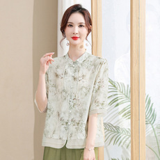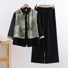 50岁妈妈夏装新款雪纺套装高贵中老年女新款中式国风小衫两件套