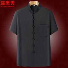 中老年唐装男士夏季款上衣短袖男套装爸爸夏装老年人爷爷宽松衣服