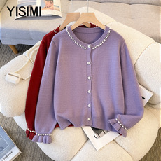 中老年胖妈妈2025春装新款针织开衫外套胖妈妈小香风纯色女士毛衣