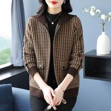 2025年妈妈秋冬洋气开衫新款上衣中老年女人春装时尚连帽毛呢外套