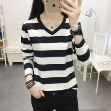 拼接长袖t恤女春装2024年新款洋气小衫内搭打底衫大码娃娃领上衣