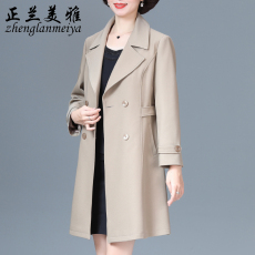 妈妈春装呢子外套2025新款女士风衣高贵中老年春秋针织双面呢大衣