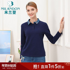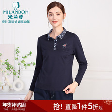 妈妈长袖t恤女 2025春装新款秋衣减龄翻领打底衫中老年人纯棉上衣