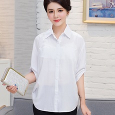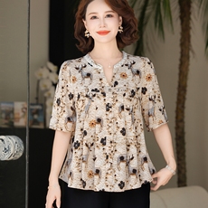 妈妈夏装雪纺衫短袖女小衫新款女装中老年七分袖上衣气质碎花衬衫