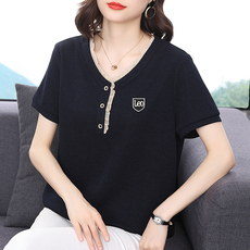 妈妈装夏装2025新款时尚短袖t恤洋气冰丝打底中老年小衫女装上衣