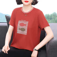 中老年夏季大码清仓短袖t恤女圆领妈妈宽松时尚上衣简约百搭汗衫