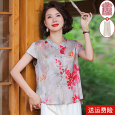 年轻妈妈装夏套装新中式国风小衫中老年夏季复古短袖衬衫上衣服女