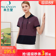 妈妈新款夏季纯棉条纹短袖T恤杉中老年女装减龄宽松烫钻休闲上衣
