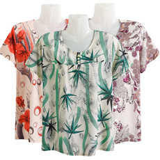 妈妈款套头冰丝上衣2025夏季新品中老年女装修身花色短袖T恤小衫
