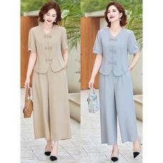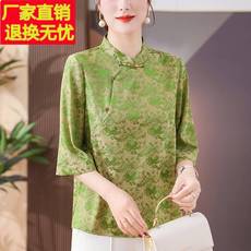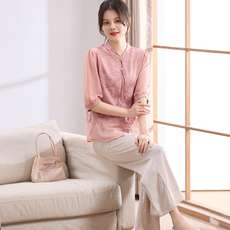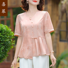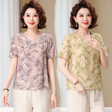 新中式妈妈夏装短袖小衫中年女装雪纺衫上衣中老年人夏季新款套装