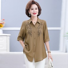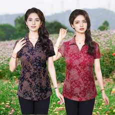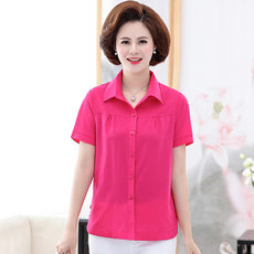 中老年夏装衬衫翻领短袖中年女装有领上衣夏天妈妈装大码开衫衬衣