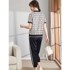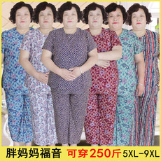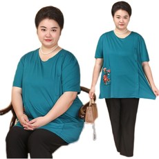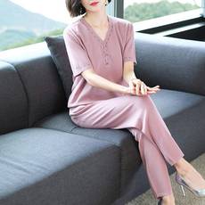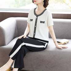 新款夏装中老年妈妈套装 短袖T恤+时尚休闲九分裤200斤大码两件套