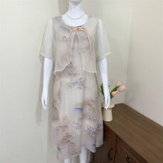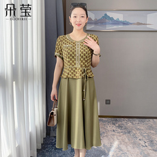 2024新款妈妈夏装洋气国风连衣裙中老年女装薄款高贵短袖套装裙子