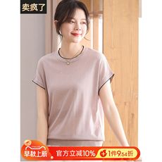 中老年妈妈夏装桑蚕丝t恤女针织冰丝七分袖中袖短袖上衣蝙蝠小衫