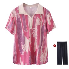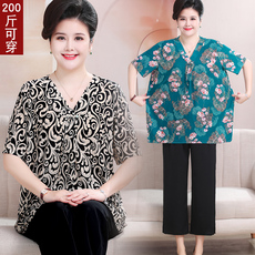 妈妈装夏装套装两件套中老年女装短袖上衣老年人奶奶装衣服老太太
