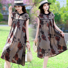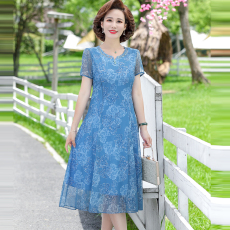 喜卉妈妈夏装雪纺连衣裙洋气质中老年时尚女装夏季短袖裙子中长款