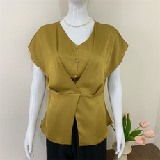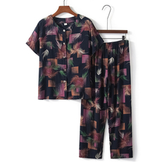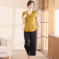 中老年人真丝香云纱上衣女短袖小个子妈妈夏装桑蚕丝旗袍小衫套装