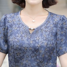 中老年女夏装短袖T恤天丝麻圆领碎花小衫洋气减龄妈妈装大码上衣