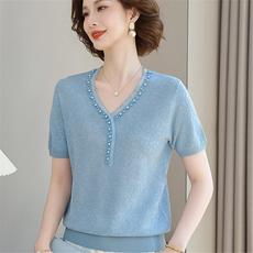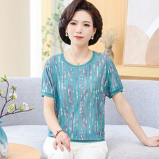 喜卉妈妈夏装洋气薄款针织短袖上衣中老年女装时尚冰丝t恤衫百搭