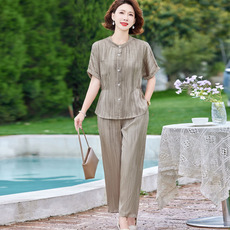中老年女装妈妈夏装套装2024新款奶奶短袖衣服老年太太绵绸两件套