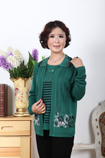 中年妈妈秋装针织衫洋气上衣中老年女装单穿假两件气质冬装打底衫