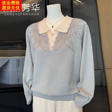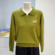 新款妈妈针织小衫洋气翻领中老年女装打底衫2024春装时尚薄款上衣