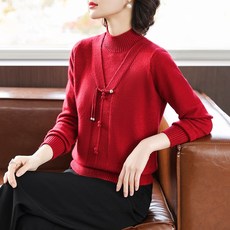妈妈春秋装薄款毛衣中年女装洋气旗袍领上衣中老年国风气质打底衫