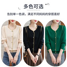 妈妈春秋装洋气薄款针织上衣中年女装新款中老年时尚长袖打底小衫