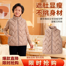 冬季轻薄羽绒服马夹女短款宽松显瘦外套白鸭绒妈妈中老年背心马甲