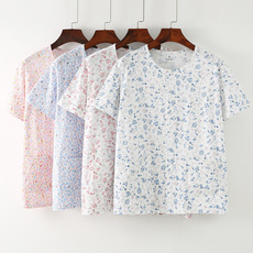 中老年人薄款大码女装宽松上衣妈妈装夏装短袖中年遮肚印花棉t恤5
