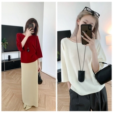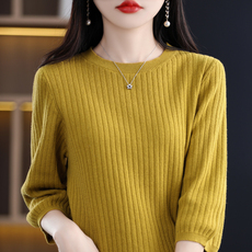 2024春秋圆领套头毛衣女中袖打底衫宽松五分袖针织短袖女内搭上衣