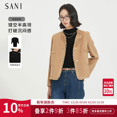 SANI商场同款100%绵羊毛半高领镂空设计感套头针织衫女中袖上衣