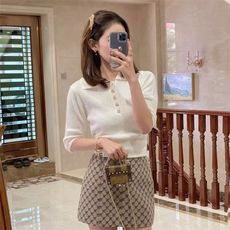 Yifini/易菲法式方领中袖薄款针织衫女夏装新款针织套头毛衫