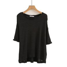 轻薄款宽松针织衫 大圆领五分袖套头空调衣罩衫 女