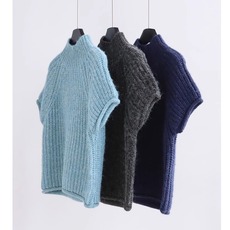 利落四季/小高领五分袖宽松套头针织衫宽松柔软短袖打底早春女装