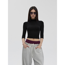 3MER哦哦三妹美式辣妹半高领中袖T恤女秋修身短款打底衫内搭上衣