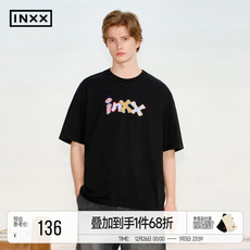 王星越同款 INXX趣味拼接花形logo短袖T恤男立体撞色五分袖上衣女