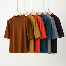 半高领莫代尔T恤女夏外穿五分袖上衣修身纯色中袖内搭大码打底衫