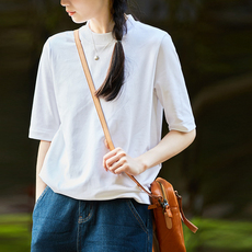 单/两件 纯棉半高领半袖T恤女秋季修身显瘦内搭五分袖打底衫上衣