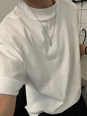XBRO百搭夏季全棉正肩修身短袖T恤半高领健身显肩宽五分袖男女ins