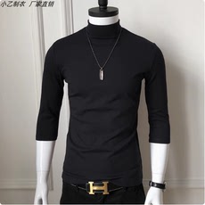 中领中袖体桖 七分袖T恤男装半高领打底衫秋潮精神小伙紧身上衣