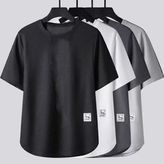 2025夏季新款国潮重磅纯棉短袖t恤男透气百搭体恤大码宽松五分袖