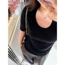 横行道2025秋季女装修身大码v领五分袖t恤黑色上衣体恤中袖打底衫