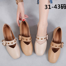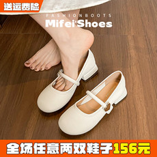 羊皮版~法式玛丽珍鞋女秋季粗跟软皮单鞋中跟温柔晚晚鞋大码女鞋