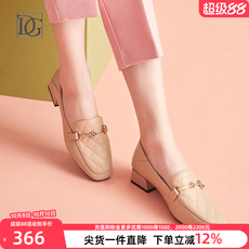 头层牛皮粗跟时尚拼色百搭春秋低跟乐福鞋亮漆皮铆钉英伦中跟单鞋