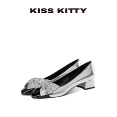 法式中跟温柔晚晚鞋单鞋女鞋子2025新款春季方头蝴蝶结粗跟通勤鞋