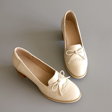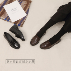慢先森推荐 复古粗跟时尚圆头百搭真皮中跟秋季英伦风单鞋 990-1